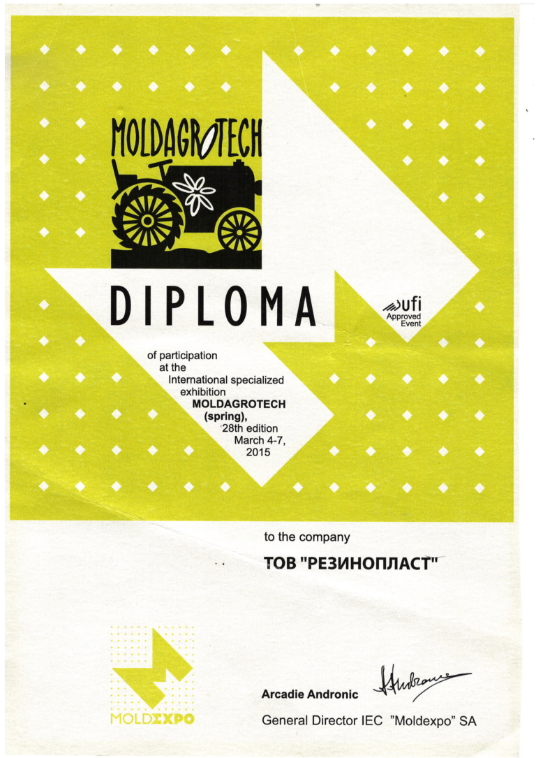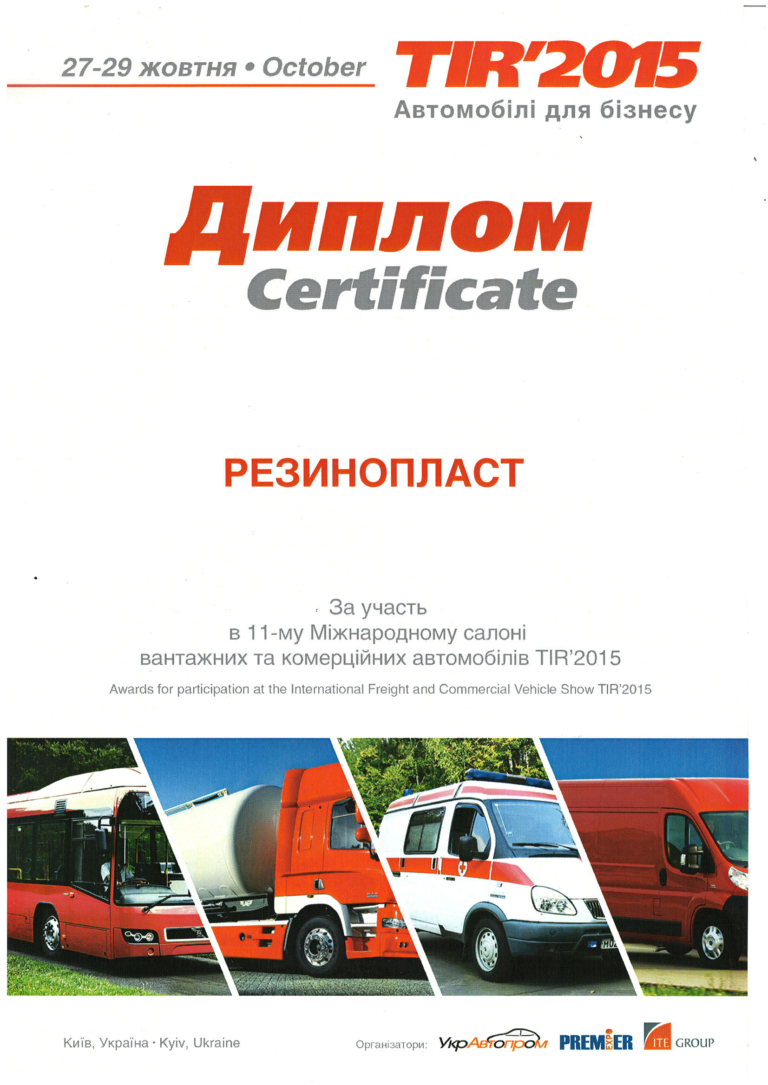 У 2015 році ТОВ “Резинопласт” акредитовано сертифікатом TUV SUD Managment Service GmbH, який засвідчує, що вимоги ISO 90016:2008 виконані. Цього ж року ми закупили сучасне обладнання для виробництва шин “гусматик” та почали виробляти шини для вилкових навантажувачів під ТМ Delasso.